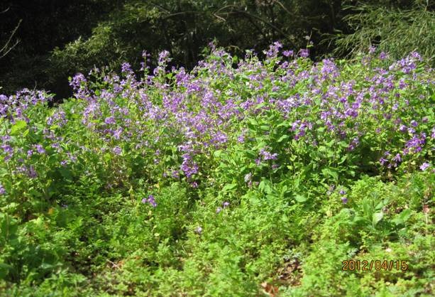 2012年4月15日 緑の地球クラブ活動(⑤ムラサキハナナの群生:春日部市:佐野林)