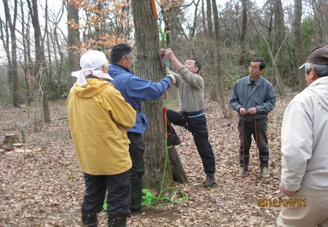 2012年4月1日 森づくり集団「栞」第3フィールド(①ロープワーク講習会:所沢市:下富)