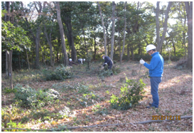 また、西側には真竹が密生し、それが風雪でしなりクヌギの苗木を傷めるおそれがあり、10数本を伐採しました。
