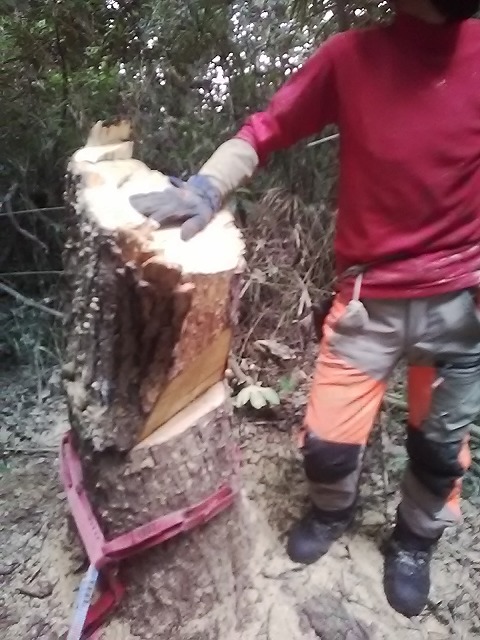 2021.5月度活動報告 5/15(土)9:30~15:30、以下の活動を行いました。・第1フィールド周辺雑草刈り(刈払機3台使用)ほぼ完了(by吉田、青野、森) 青野さん、草叢中に雉の卵を発見!・第2フフィールド枯損大木(アカマツ)伐倒(by塚本さん)アカマツ大木は樹齢70~80年と思われる高さ25mを越す大木で、伐倒の際架かり木になる至難の作業でしたが、塚本さんのまたまた超プロ技を拝見させて頂きました。(元玉伐り:架かり木になった幹元を数回玉伐り除去して短くし架かりを外して伐倒) 共有: Facebook で共有するにはクリックしてください (新しいウィンドウで開きます) Facebook クリックして X で共有 (新しいウィンドウで開きます) X いいね 読み込み中…