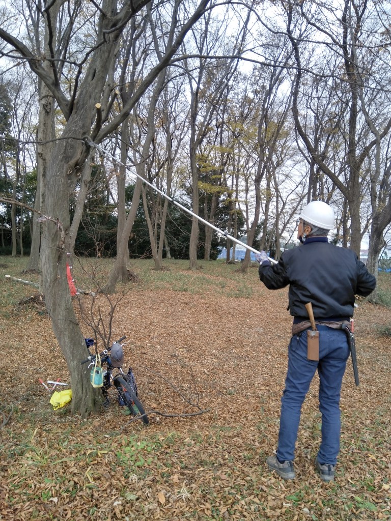 吉田&森:第一フィールドの春一番(2/15)で落下した枝の片付け