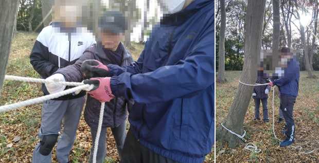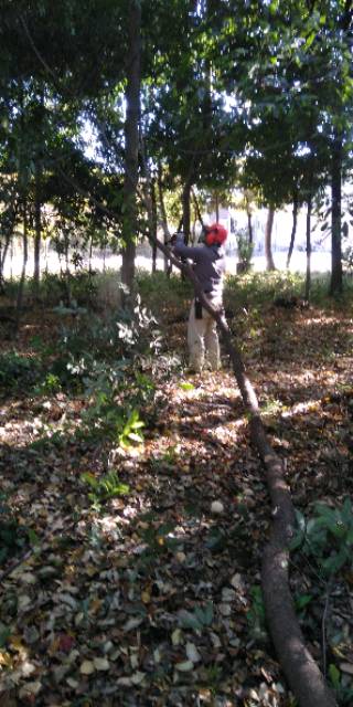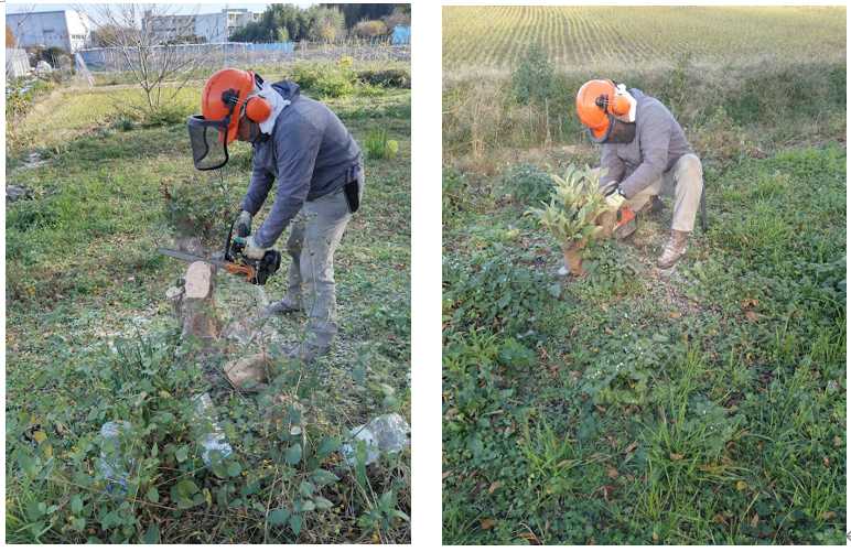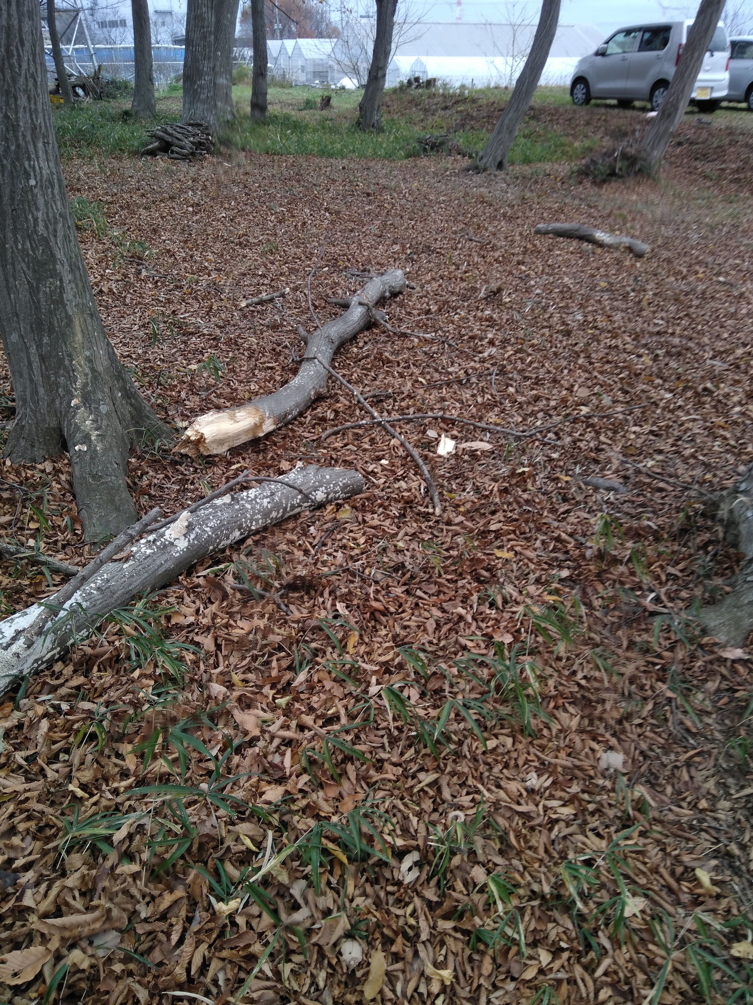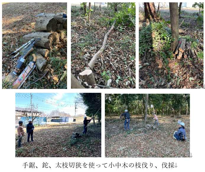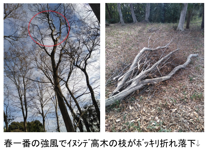 吉田&森:第一フィールドの春一番(2/15)で落下した枝の片付け