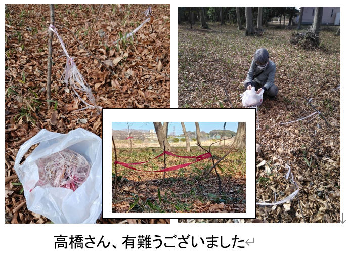 春一番でいっぱい落ちていた大小の枝は、私が行った時は吉田さんと森さんが片付けた後でした。