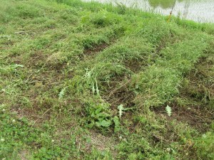 ■場所:内牧第1フィールド、車置き場とノリ面の下刈り作業、 (刈払機、カマを持参)