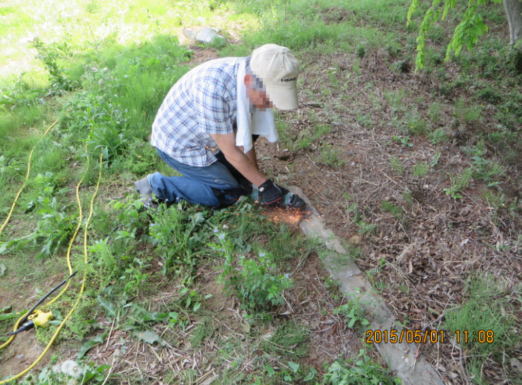 熱中症予報が出ており林内は蒸し暑かったが、幸いケガなく、掛かり木なく、熱中症にもならず、チームワークで2本を伐採。1本目は追い口がちょっと低かったが、2本目は上出来だった。そして、12時20分に作業終了となった。
