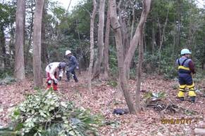 平地/斜面を問わず、樹木を倒す時指示を出すタイミングの難しさは同じと感じた。ただ、斜面の場合、作業時の足場の悪さ、危険度の高さを実感した。